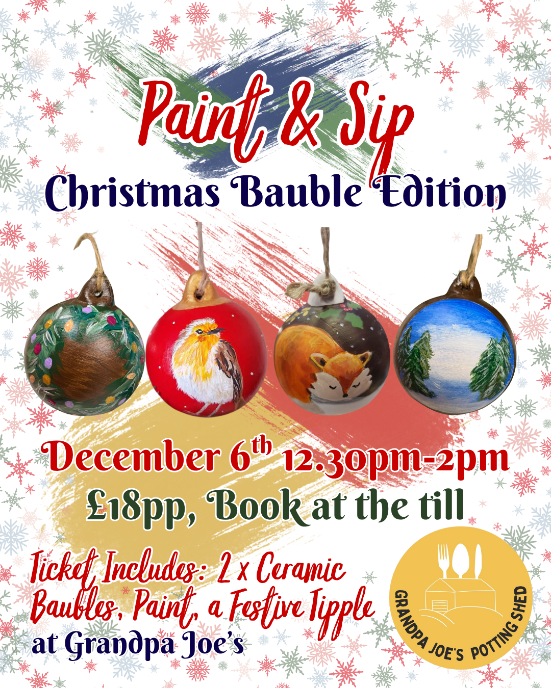Book tickets at Grandpa Joe's Potting Shed Join us for a festive afternoon of bauble painting!